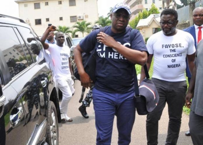 Mr Fayose was arraigned at a High Court in Lagos after he presented himself at the office of the Economic and Financial Crimes Commission in Abuja.