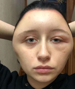 The horrific reaction had first caused her scalp to itch before the top of head started to swell up.
