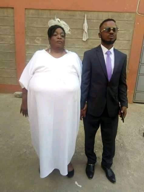 Wedding photos of a young man and his older partner with gigantic boobs, got people talking
