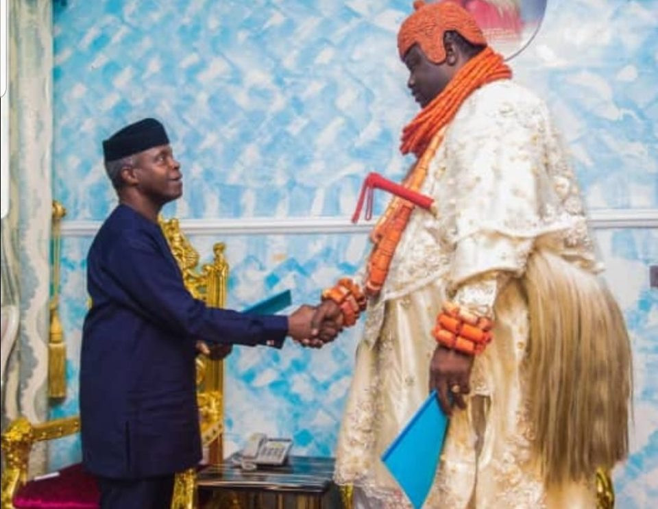 Drop your best caption for this photo of Vice President Yemi Osibanjo with King Timiyan of Ogulagha Kingdom.