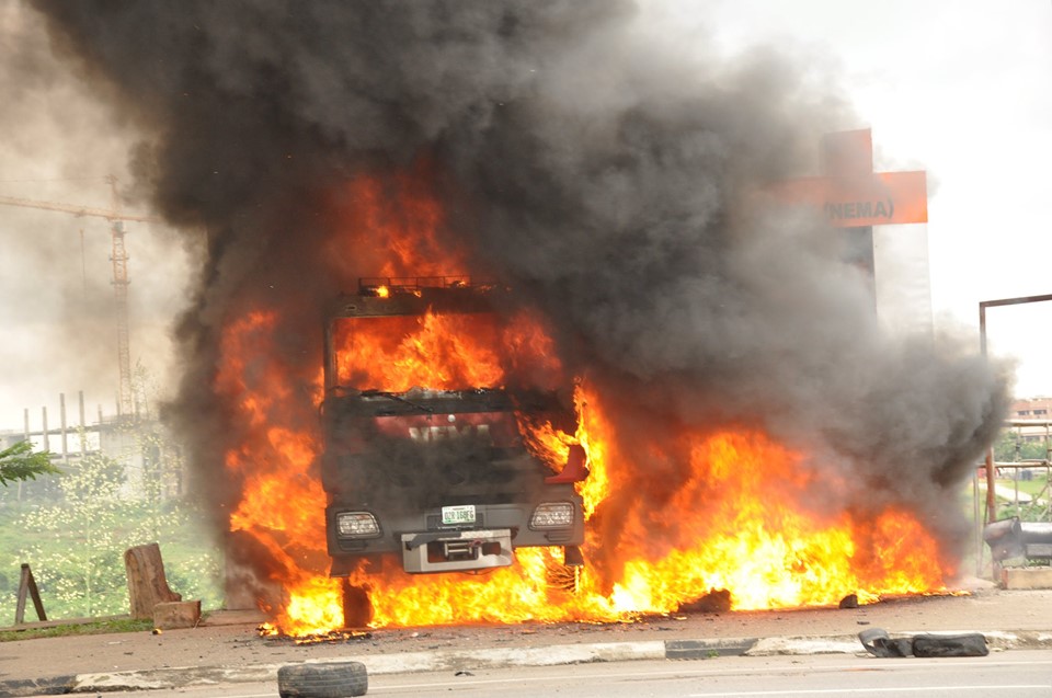 A bus belonging to the National Emergency Management Agency, NEMA, was reportedly burnt by the angry Shiite members.