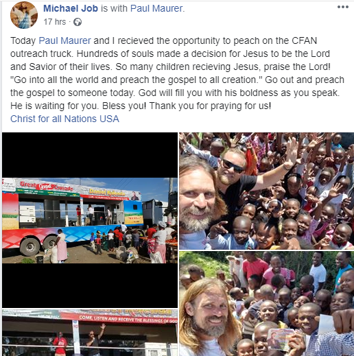 Today Paul Maurer and I recieved the opportunity to peach on the CFAN outreach truck. Hundreds of souls made a decision for Jesus to be the Lord and Savior of their lives. So many children recieving Jesus, praise the Lord! “Go into all the world and preach the gospel to all creation.” Go out and preach the gospel to someone today. God will fill you with his boldness as you speak. He is waiting for you. Bless you! Thank you for praying for us!