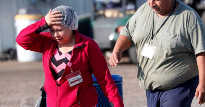 The arrested workers were transported to a local Mississippi National Guard hangar where they were all questioned about their immigration status and if they had deportation orders.
