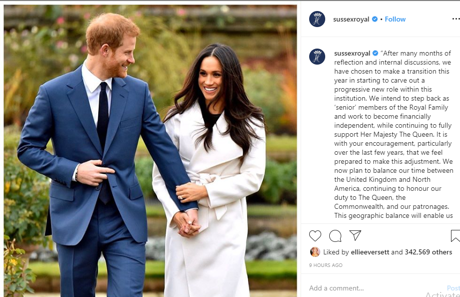 Prince Harry and Meghan Markle have announced that they will be stepping back from their role as senior members of the Royal Family.