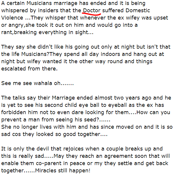 Things have again gone wrong as reports have it that Dr Sid has been getting abused by his wife for a while.