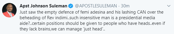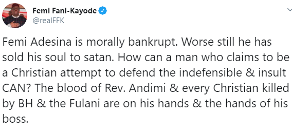 Femi Fani-Kayode, Apostle Johnson Suleiman, and other Nigerians have taken to Twitter to attack Femi Adesina, President Buhari’s Special Adviser on Media and Publicity, over the statement he released yesterday calling out the Christian Association of Nigeria CAN.