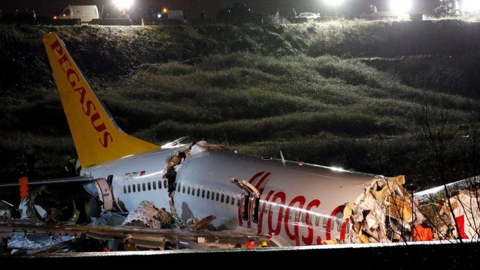 The Boeing 737 operated by Turkish low-cost carrier Pegasus Airlines had flown into Istanbul’s Sabiha Gokcen airport from the Aegean port city of Izmir on Wednesday, NTV television reported.