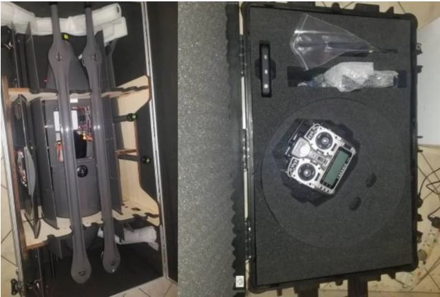 The man who was in the possession of the two highly weaponised drones was arrested after attention was drawn to the suspicious package which was allegedly concealed in cartons.