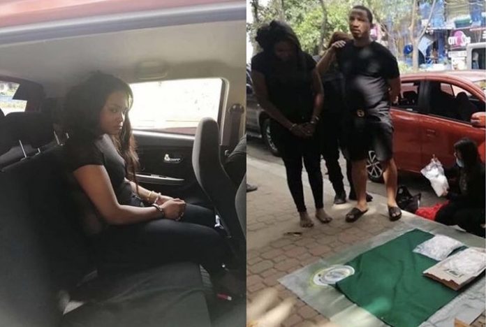 The suspects are identified as Nigerian Lawrence Ikegwuruka Obinna, 27, and and Malagasy Michaella Agustine, 23, both residing at the same address in Cavite.