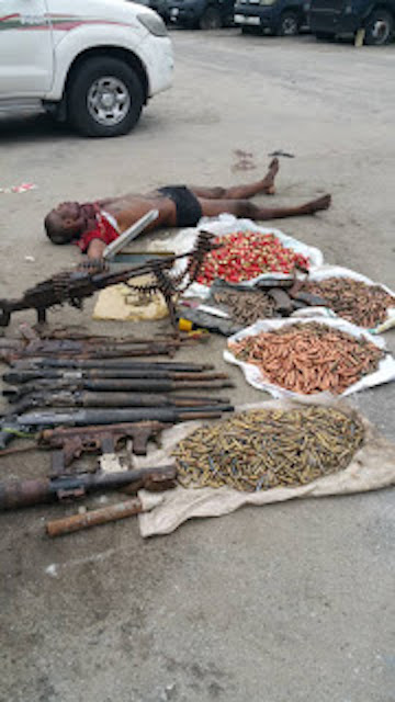 Spokesman of the Rivers State Police Command, DSP Nnamdi Omoni showed the weapons recovered in the busted caamp.