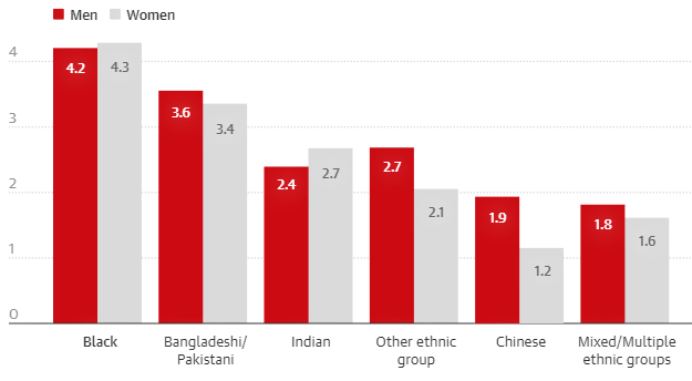 “Race inequality is persistent across Britain, with people from ethnic minorities facing disadvantage in their living conditions, access to healthcare and economic opportunities, among other areas, which could be contributing factors.”