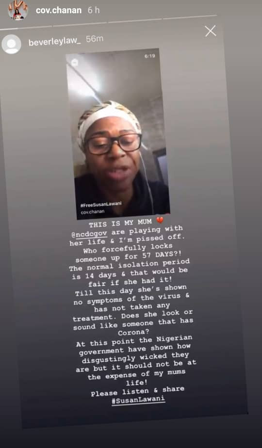 The children of Susan Idoko Okpe, the Benue state COVID-19 index case, have called out the Nigeria Center for Disease Control (NCDC), to release their mum who has been in the Abuja Isolation center for 57 days now.