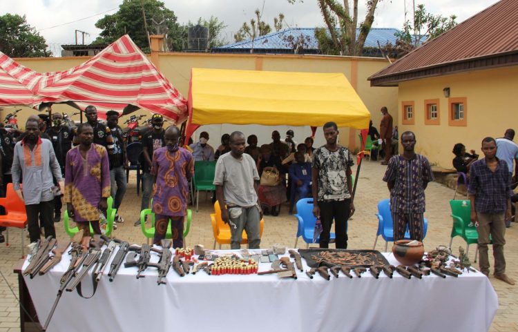 “The following were recovered from the suspects: One (1) AK49 rifle, One (1) AK47 rifle, two (2) pump action guns, five (5) locally made guns, nineteen (19) locally made short guns, one hundred and twenty-five (125) cartridges, one hundred and forty-five (145) AK47 ammunition, locally fabricated explosives and a Toyota Corolla vehicle with Reg. No. LSR 490 GC. The suspects will be charged to court on conclusion of investigations.”
