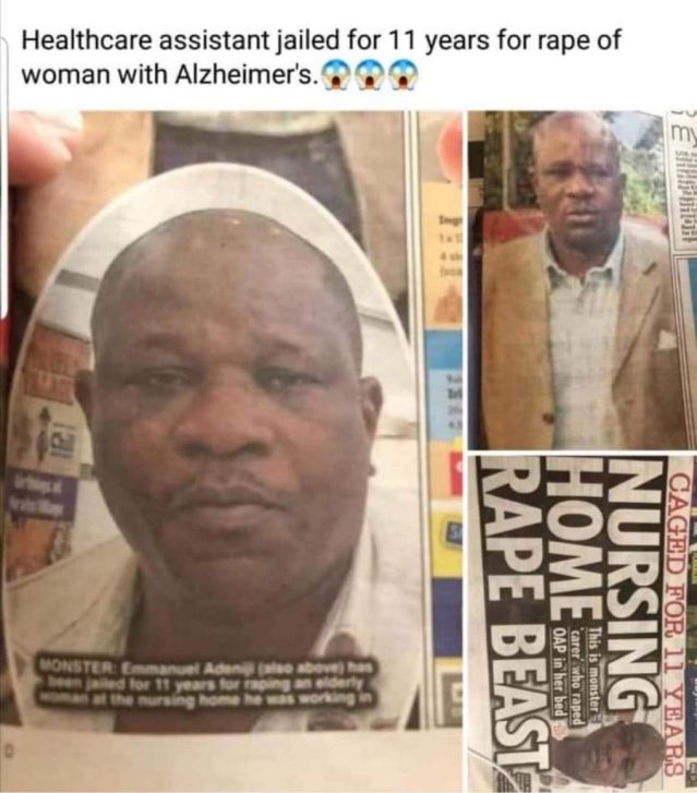 CCTV footage from the nursing home at the time of the rape showed Adeniji going in and coming out of the woman’s room at about 03:00 local time on 3 April.