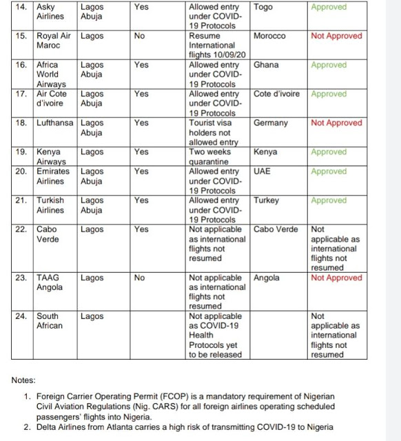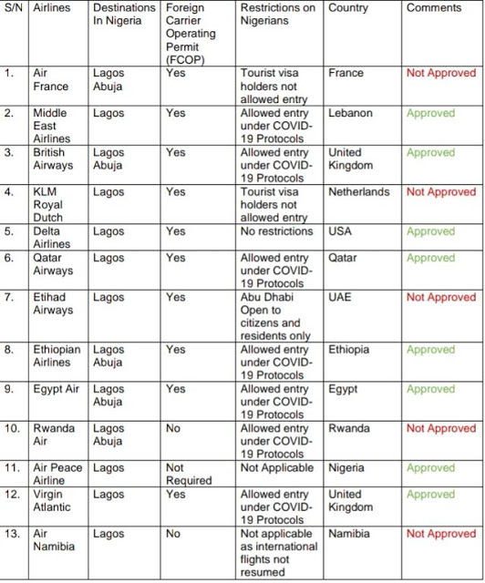 According to Aviation Minister, Hadi Sirika, some airlines did not receive approval because their originating countries have not begun to allow entry to tourist visa holders.