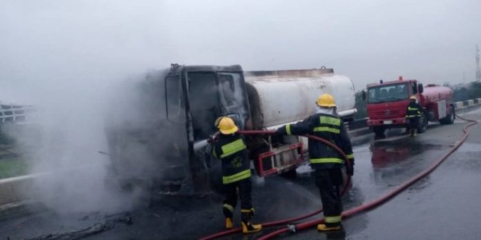“However, no loss of life nor injury sustained at the scene of incident. LRT, LASG fire service, Lastma and Police are responders at the scene working together to put out the fire and evacuate the tanker off the road in order to restore normalcy along the axis and prevent any secondary incident. Recovery operation ongoing.