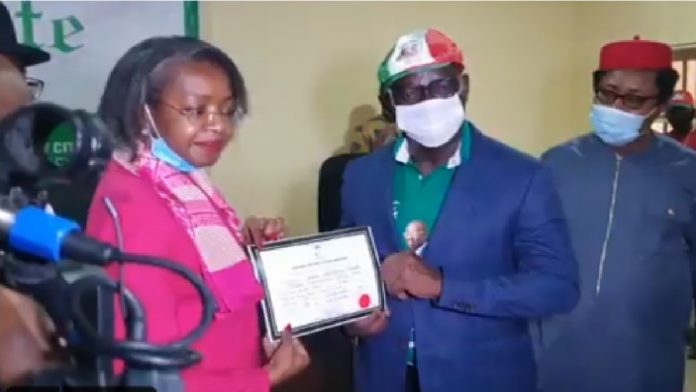 The Independent National Electoral Commission has presented a certificate of return to Governor Godwin Obaseki, winner of the just concluded Edo State governorship election.