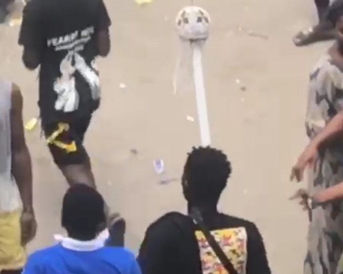 A particular frame in the videos showed the thugs proudly displaying the looted staff of office as they made away with it.