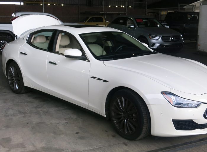 The newest vehicle recovered was a 2020 Maserati Ghibli valued at $78,485.