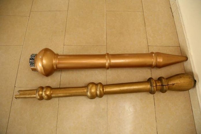 It said the mace was stolen at Abule Ado zone of Lagos, Southwest Nigeria around 8:30 am.