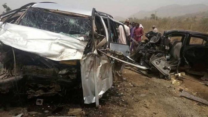 According to eyewitnesses, the accident happened when a government vehicle collided with a commercial bus carrying 18 passengers passing by the road which caught fire and roasted the occupants.