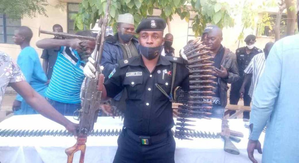 The police which recovered two General Purpose Machine Guns (GPMGs), one LAR rifle, 179 Anti-Aircraft (AA) ammunition and about N3.4 million CFA Franc from the suspects, also paraded Murtala Haruna, 20, described as a nephew of the arms dealer; Ibrahim Dabo, 19, from Natsinta village, Kandamau, Maradi, Niger Republic; Sambo Muhammadu, 22, and Jibir Adamu, 20.