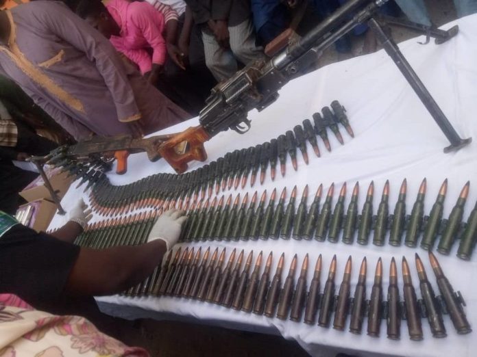 The police which recovered two General Purpose Machine Guns (GPMGs), one LAR rifle, 179 Anti-Aircraft (AA) ammunition and about N3.4 million CFA Franc from the suspects, also paraded Murtala Haruna, 20, described as a nephew of the arms dealer; Ibrahim Dabo, 19, from Natsinta village, Kandamau, Maradi, Niger Republic; Sambo Muhammadu, 22, and Jibir Adamu, 20.