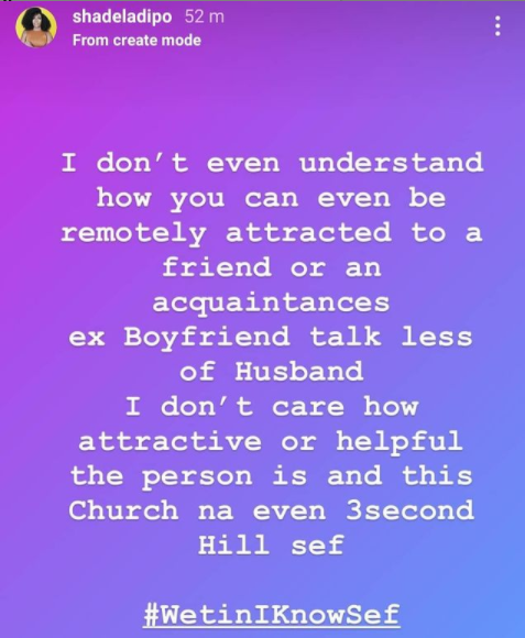Shade stated that she can’t be attracted to the ex-boyfriend of an acquaintance talk more of someone else’s spouse.