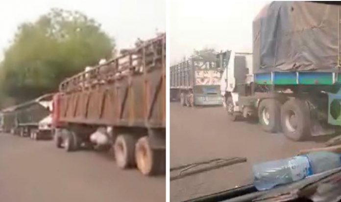 From the person recording the video, he alleged that trucks were been sent back to the North and are not allowed to pass to the South after cattle and food traders began strike yesterday, February 25.