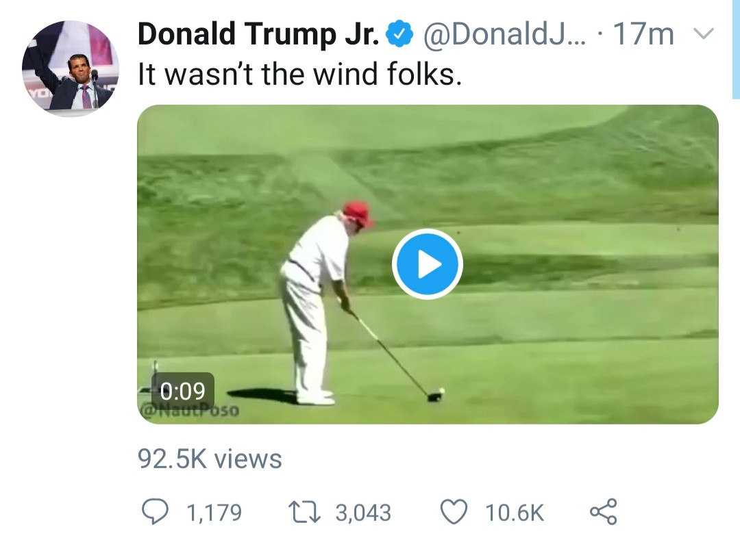 He also shared a doctored video showing his father, Donald Trump Sr., playing golf, and when he hit the ball, it flew and hit Biden on the head, causing him to fall.