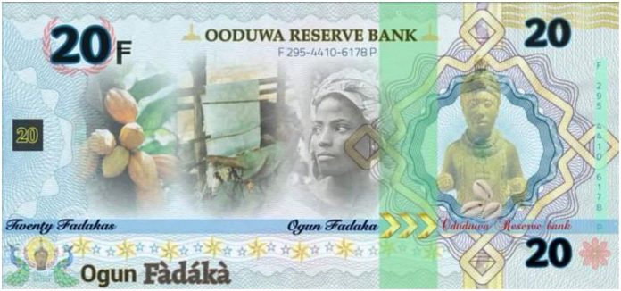“Oduduwa National Currency shall be called ‘FADAKA’ Meaning Silver .. or short as just ‘FAD’ Here is a 20 Fadaka Sample Banknote,” the secessionist group tweeted.