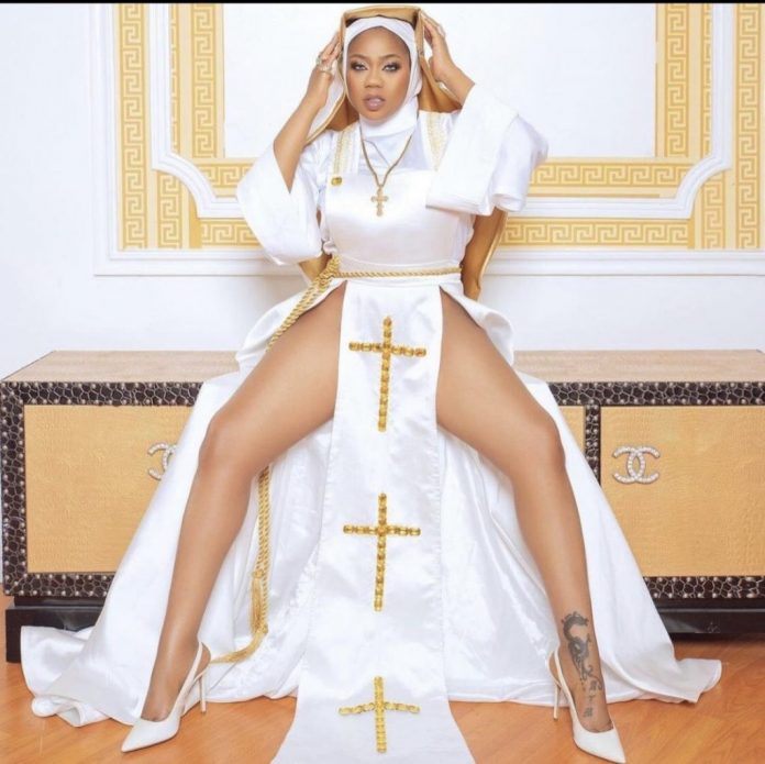 Nigerians slam Toyin Lawani over racy Nun outfit