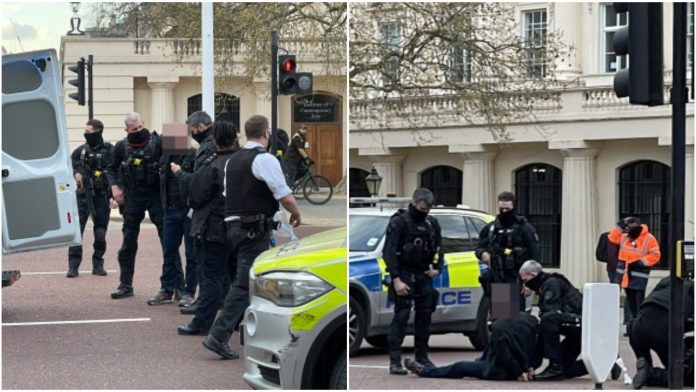 He was apprehended by six armed policemen while walking down the Mall in the direction of Buckingham Palace.