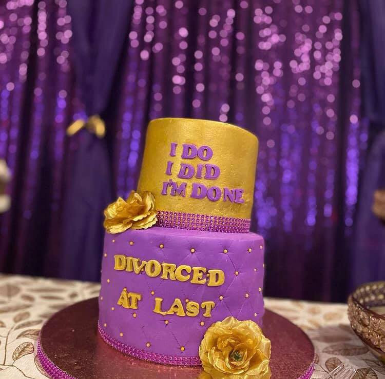 Some of the party’s decoration had inscriptions which read “I do, I did, I’m done”, “Divorced at last”, “bye Felicia”.