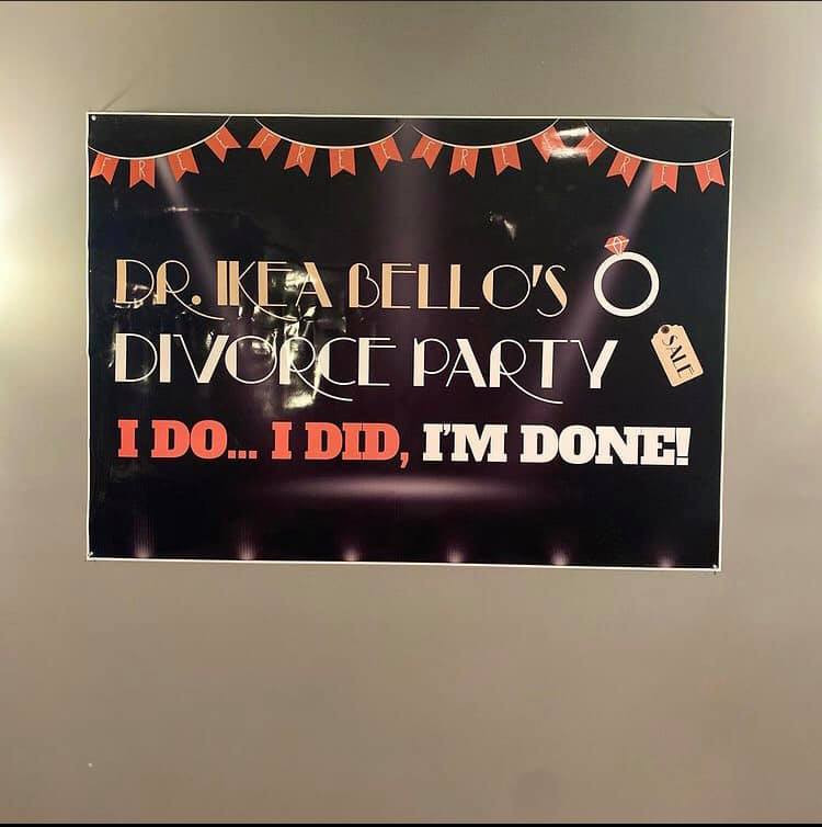 Dr Ikea Bello’s divorce party was held last week and attended by her friends who wore red outfits.