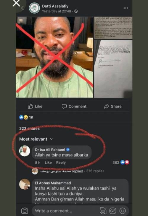 Commenting on the post with his verified Facebook page, Pantami wrote in Hausa, “Allah ya tsine masa alubarika” which means “May Allah rebuke his blessings.”