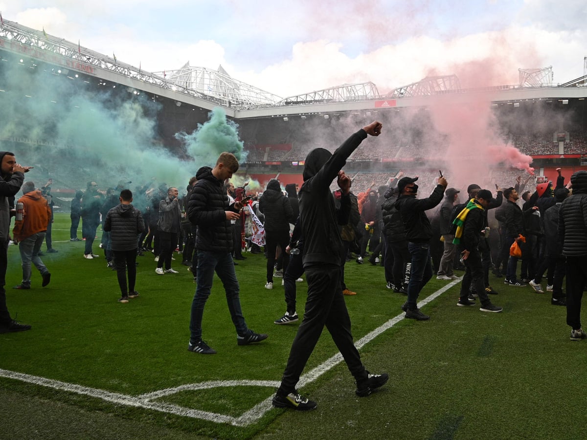 That prompted United fans to call for a demonstration before the Liverpool game and an angry mob of 200 protesters pushed down security barriers outside Old Trafford before running onto the pitch.