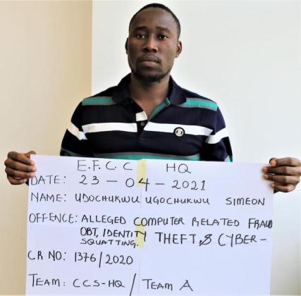 Udochukwu Ugochukwu Simeon, a suspected internet fraudster has been apprehended by the Economic and Financial Crimes Commission.