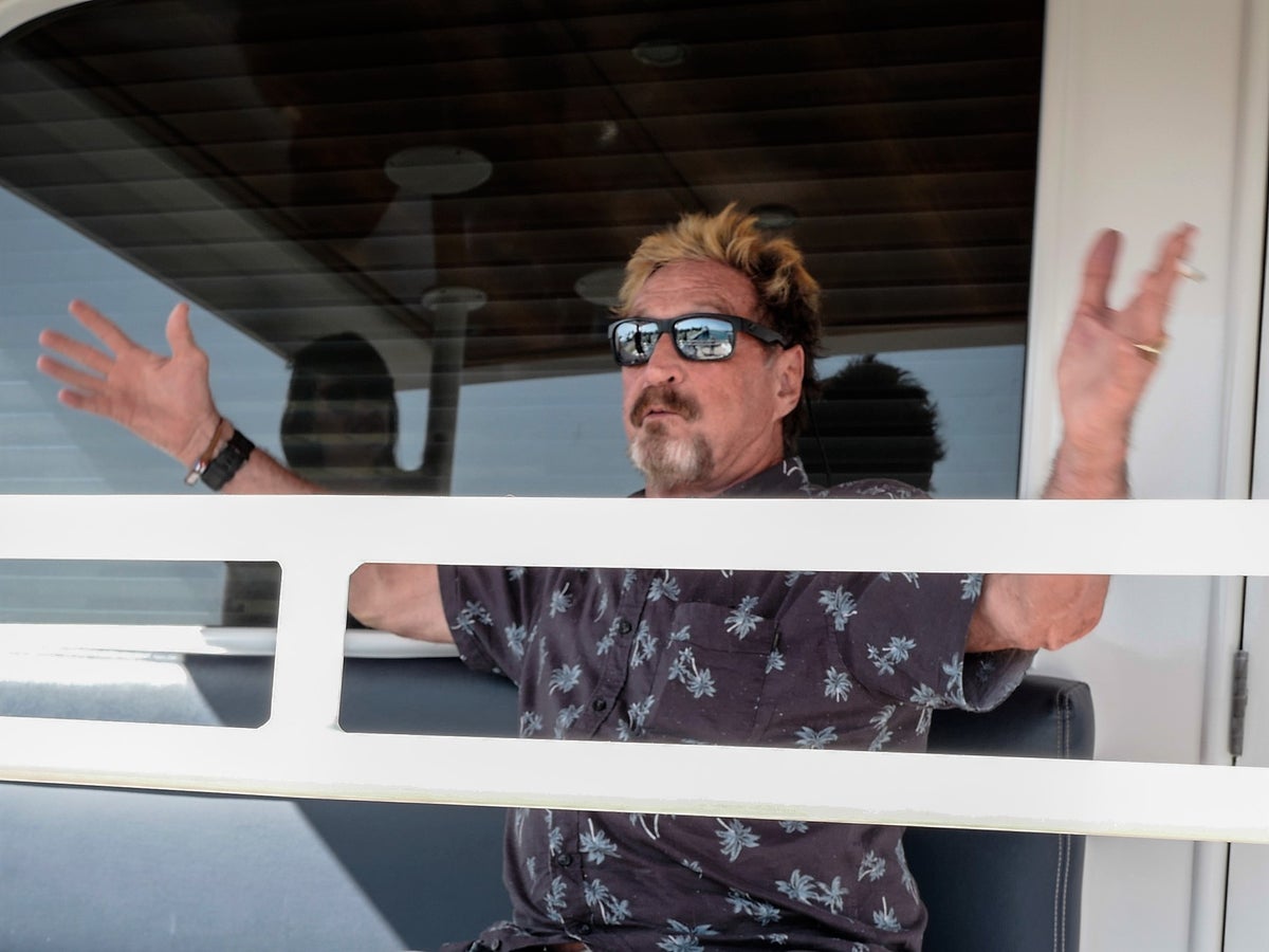 McAfee went on the run from police in 2012 after his neighbor in Belize, Gregory Faull, a retired contractor who came to the country from Florida, was found fatally shot. McAfee was later arrested in Guatemala where he was accused of entering that country illegally.