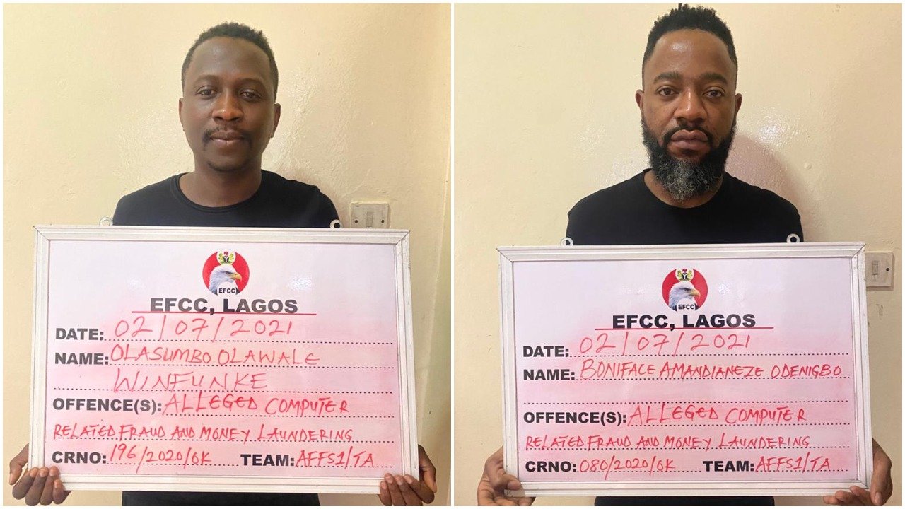 Boniface Odenigbo Amandianeze and Olasunmbo Olawale Winfunke were nabbed for alleged internet fraud.