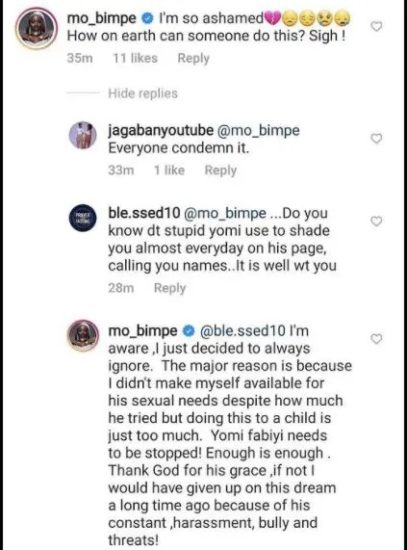 “The major reason is because I didn’t make myself available for his sexual needs despite how much he tried but doing this to a child is just too much. Yomi fabiyi needs to be stopped! Enough is enough . Thank God for his grace ,if not I would have given up on this dream a long time ago because of his constant ,harassment, bully and threats!”