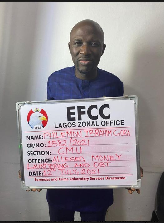 The Economic and Financial Crimes Commission, Lagos Zonal Office, has arrested one Philemon Ibrahim Gora for offences bordering on obtaining money by false pretence, stealing, issuance of dud cheque and money laundering to the tune of N525,000,000.00( Five Hundred and Twenty-five Million Naira) in Lagos.