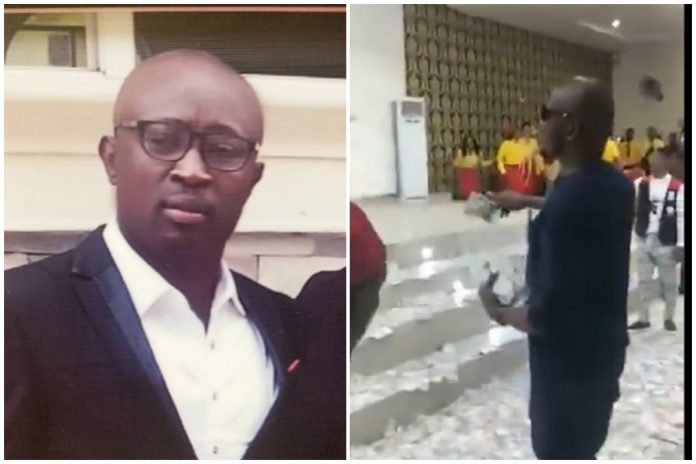 A video has emerged showing a notorious drug baron, Tony Chidi Onwurolu declared wanted by the National Drug Law Enforcement Agency (NDLEA) spraying dollars on a man of God as if it is water.