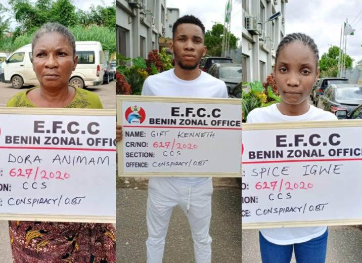 Justice F. A. Olubanjo of the Federal High Court sitting in Asaba, Delta State on Thursday, July 22 convicted and sentenced Gift Kenneth, Dora Animam and Spice Chimzi Dandy Igwe to prison for internet-related fraud.