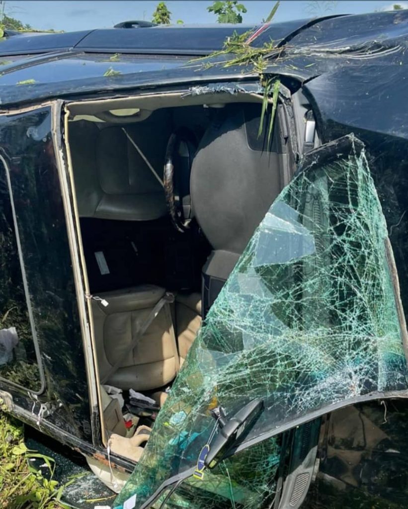 The singer’s car somersaulted a couple of times, which caused the front windshield to pull off, and left his car in a complete wreck.
