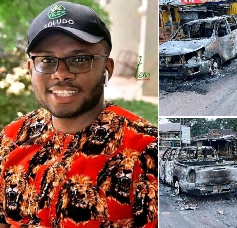 One of the vehicles burnt by the hoodlums belonged to Dr Nelson Omenugha, the son of Anambra Commissioner for Basic Education, Prof Kate Omenugha.