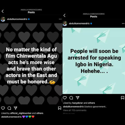 In a post on his Instagram page, Abdulkareem said Agu deserved to be honoured in the East for his brave act.