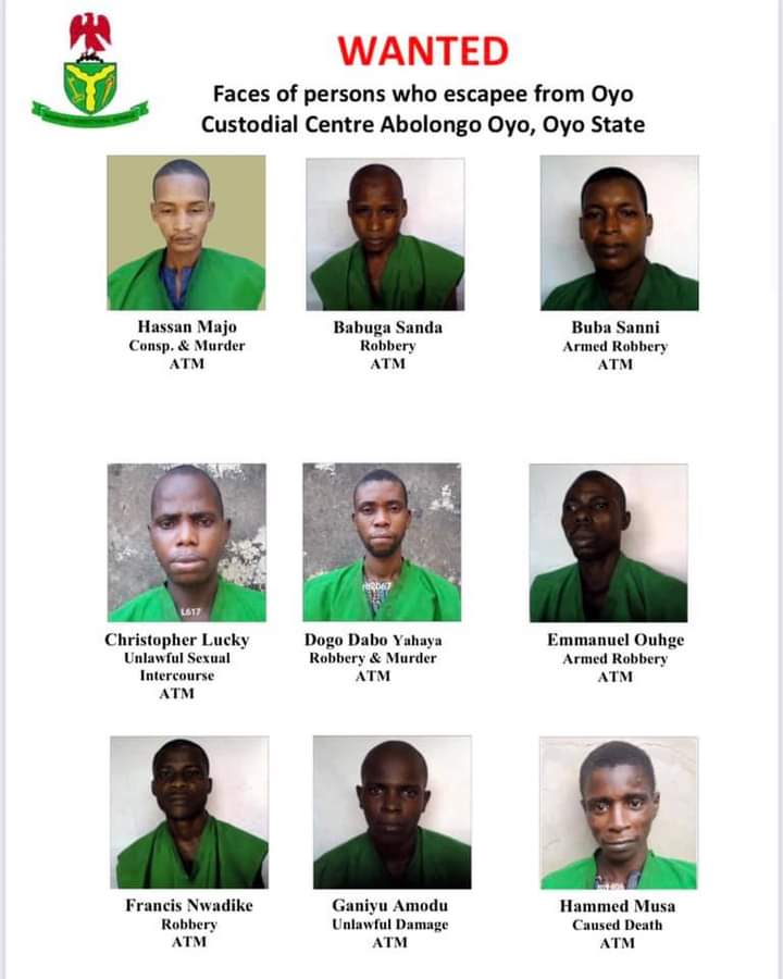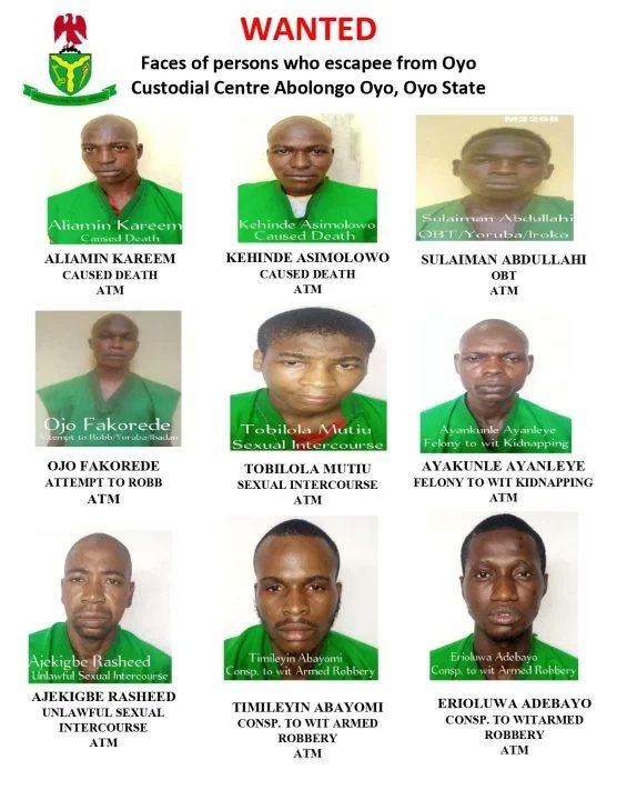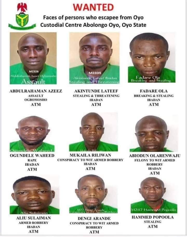 The Ministry of Interior has published the photos of prison inmates who escaped from the Oyo custodial center last week.