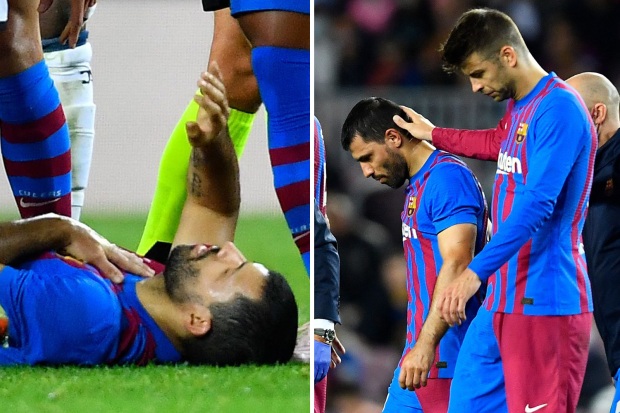 Aguero, 33, was forced off in the 41st minute at Camp Nou after he went down clutching his chest. It was not clear what caused the problem.