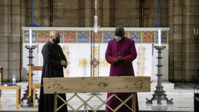 Tutu’s successor, Thabo Makgoba, said a prayer after priests burnt incense over the coffin before it was lifted from the hearse.